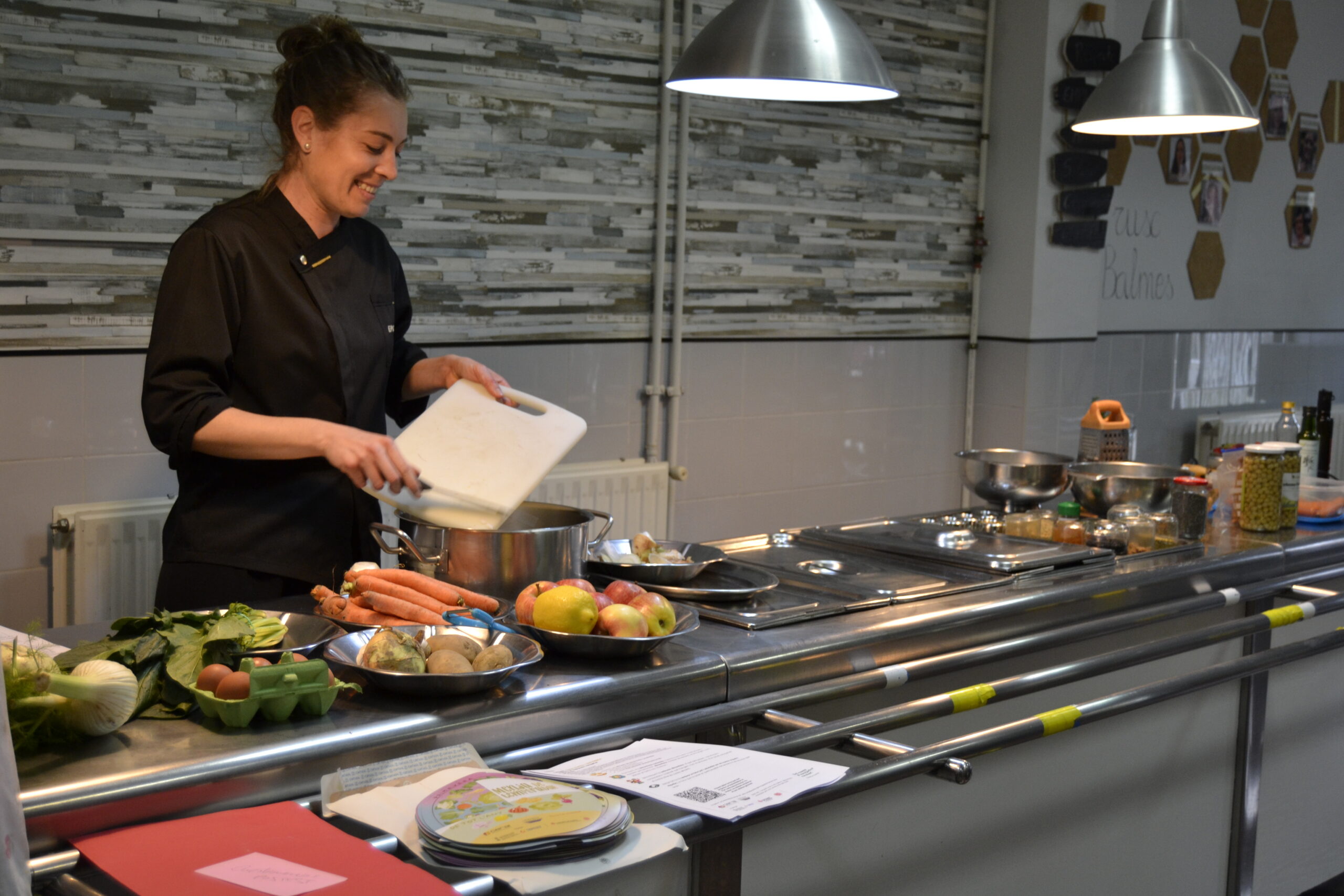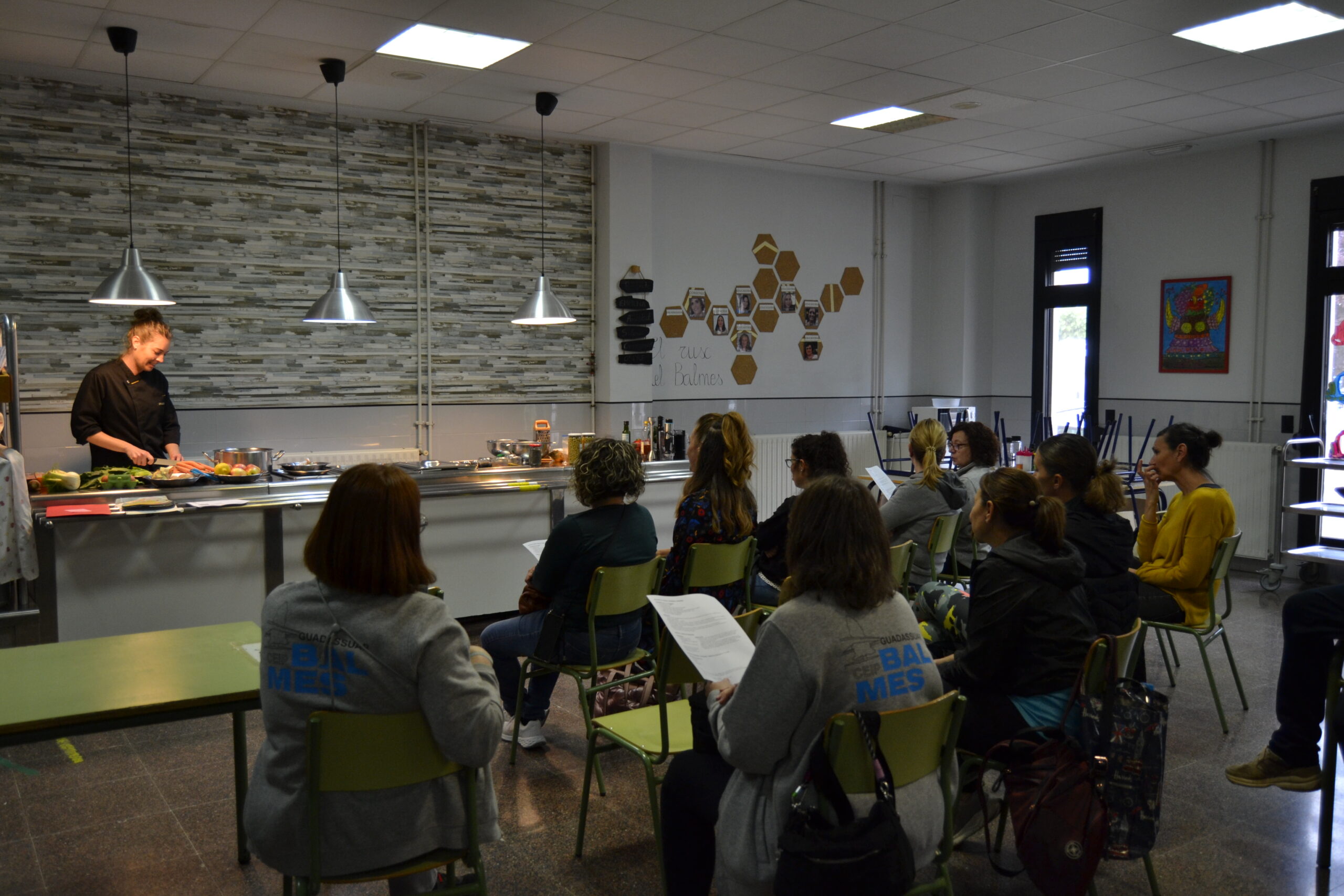 Ya por la tarde, las familias junto al profesorado se enfundaron el delantal y descubrieron técnicas de cocina sostenible de la mano de la cocinera Cristina Ruiz, en el CEIP Lluís Guarner y de la nutricionista María Marín, en el CEIP Balmes. Prepararon recetas rápidas con alimentos de temporada y agroecológicos, y pudieron degustar los resultados intercambiando dudas y conocimientos sobre alimentación saludable.