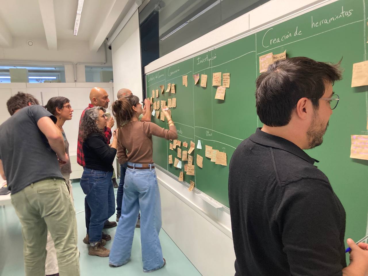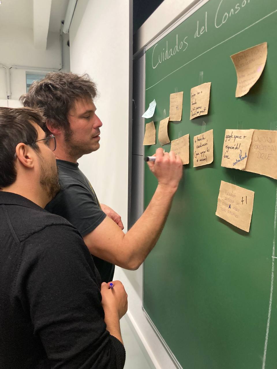 La sede de la Fundación Juana de Vega acogió la jornada de trabajo del segundo día entre las agrupaciones participantes. En diferentes grupos se abordaron asuntos tan importantes para la red como su modelo de gobernanza, la redacción de un plan estratégico, la intercooperación técnica, las necesidades y capacidades para acceder conjuntamente a financiación o su futura proyección comercial. También hubo espacio para conocer la experiencia de la Red Estatal de Supermercados Cooperativos con la intervención de Fernando Navalón.