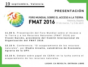 El Foro Mundial sobre el Acceso a la Tierra y a los Recursos Naturales se celebra en Valencia en 2016